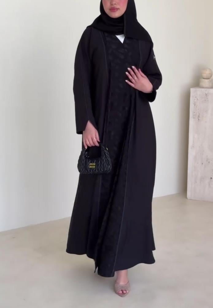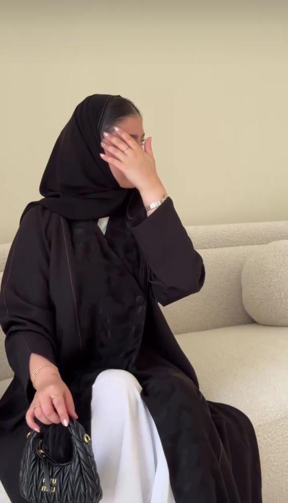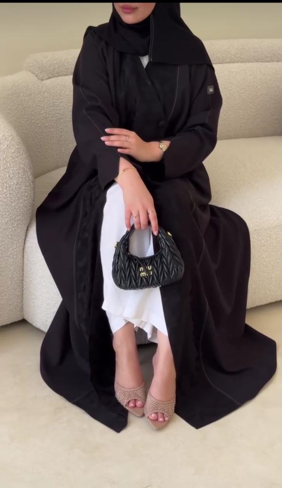 عبايه الصيف قماش حرير مع مشجر ناعم سواد وعملي القماش حرير القفله زرار ٣الكم ضيق تتوفر طرحه مجانا مع العبايه